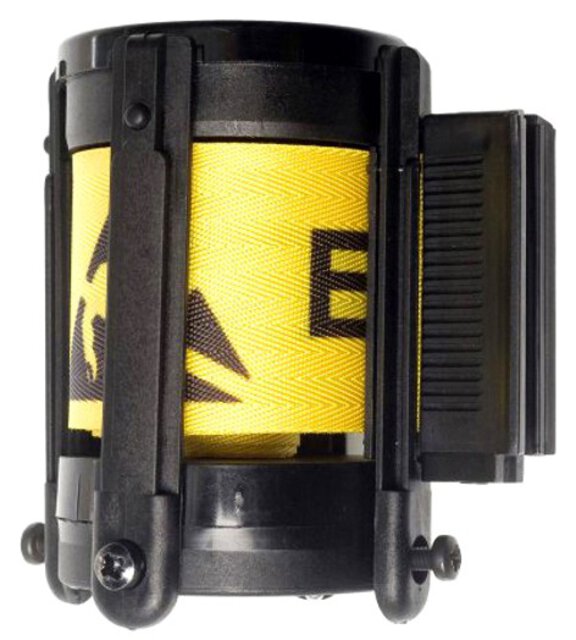 Gurtabsperrpfosten, Pfostenrohr gelb, Bodenplatte schwarz