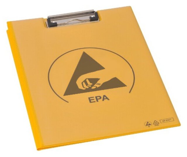 ESD Klemmbrett mit Deckel, DIN A4 PVC IDP-STAT, gelb, 485 x 315 mm
