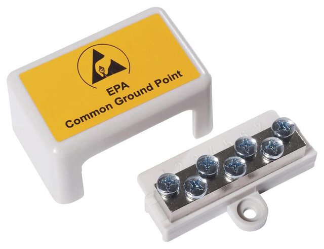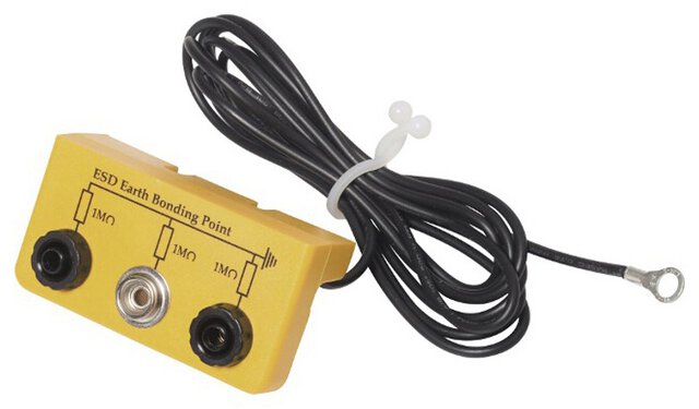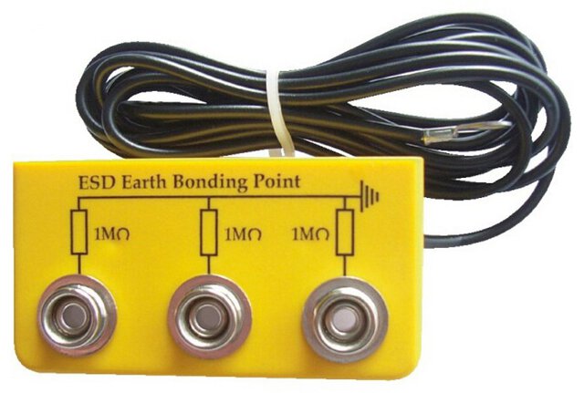 ESD Erdungsbox, 3 Anschlüsse, 1 x 10mm DK, 1 MOhm pro Anschluss, gelb
