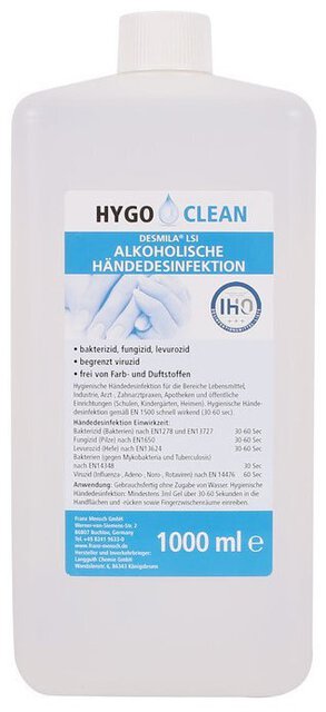 HygoClean Alkoholische Händedesinfektion, 1 Liter Biozid, vollviruzid