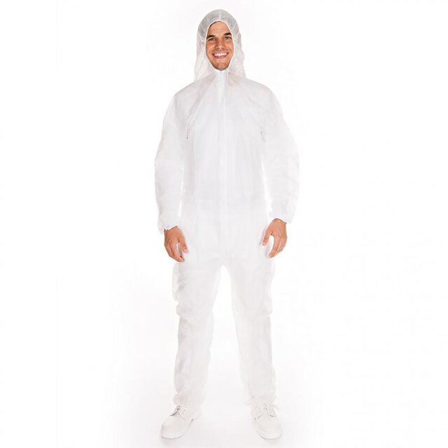 Hygonorm Overall "Light", PP, weiß, Taillen + Armgummi, Kapuze