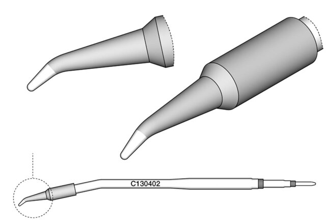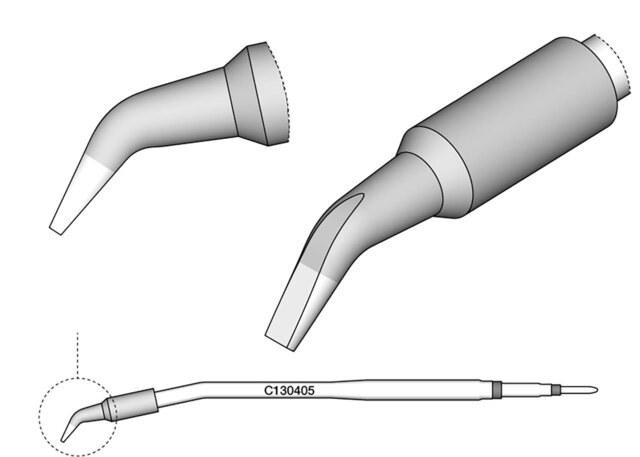 - Bent Tip Design: Die C115 Serie verfügt über gebogene Spitzen, die perfekt zur Positionierung des Lötdrahts passen, der durch den AP130 zugeführt wird. Dies ermöglicht eine präzise und effiziente Lötarbeit.