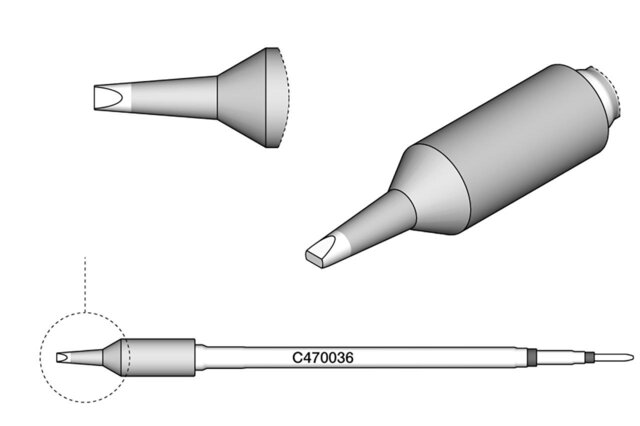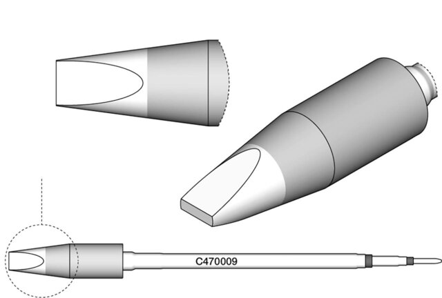 - Klingenförmig: Die klingenförmige Lötspitze wie das Modell C470-059 ist ideal für präzise Lötarbeiten an schwer zugänglichen Stellen. Ihre scharfe Form ermöglicht exakte und saubere Lötungen.