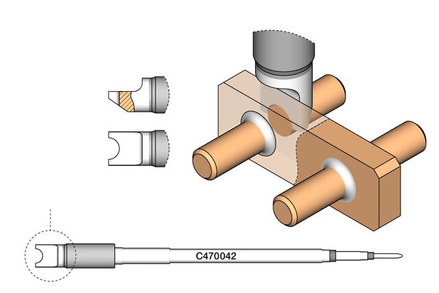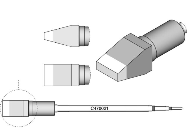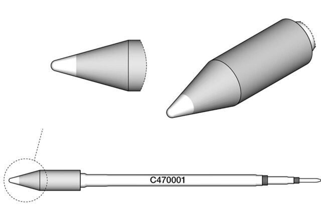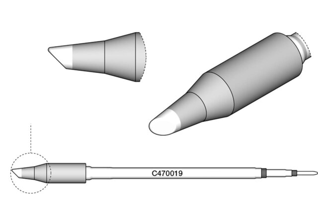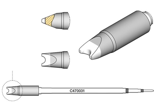 - Lötspitze für Kabel und Steckverbinder: Das Modell C470-031 ist speziell für das Löten von Kabeln und Steckverbindern entwickelt worden. Diese Lötspitze bietet eine ausgezeichnete Wärmeübertragung und sorgt für zuverlässige Verbindungen.