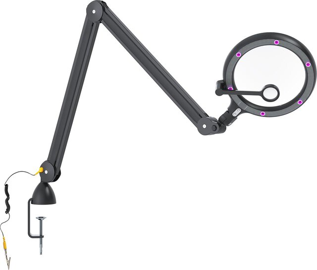 - Präzise Beleuchtung: Lupenleuchten erzeugen gleichmäßiges, diffuses Licht, das in der Elektronikfertigung für präzise Inspektionen und Montagearbeiten unerlässlich ist. Ebenso ermöglichen schwenkbare Gestelle und Halterungen ein beidhändiges Arbeiten.