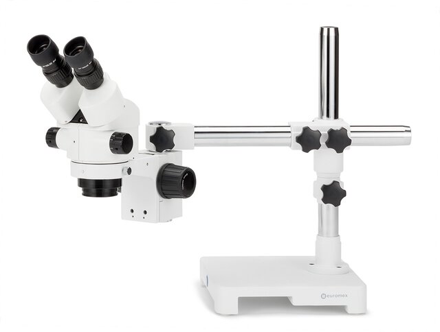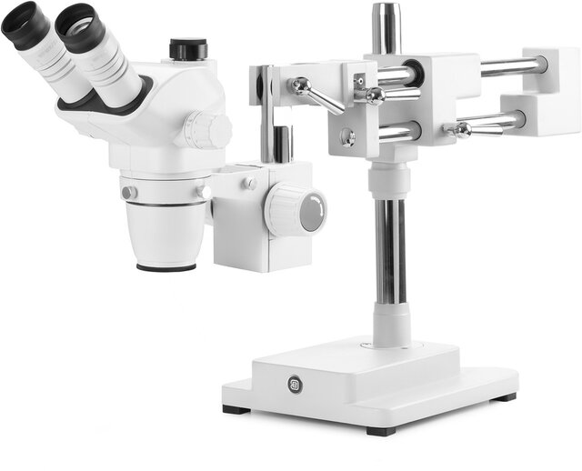 Stereomikroskop StereoBlue 1703-B, trinokular, 0,5x - 5,5x Zoom, Doppelarmstativ