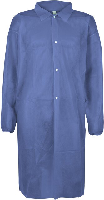 PP-Kittel, 28 Gr/qm, 4 Druckknöpfe, Kragen, Armgummi, blau, CE CAT.I