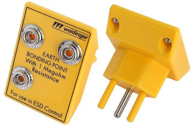 ESD-Erdungsstecker für CH-Steckdose, 3x 10 mm Druckknopf, eckig, gelb