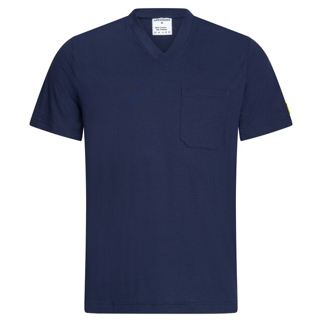 ESD-T-Shirt mit Brusttasche, V-Ausschnitt, 150g/m², marineblau