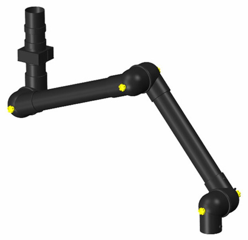 ESD Absaugarm System DN75 für Wand-/Deckenmontage, 3 Gelenke, schwarz, 1060 mm