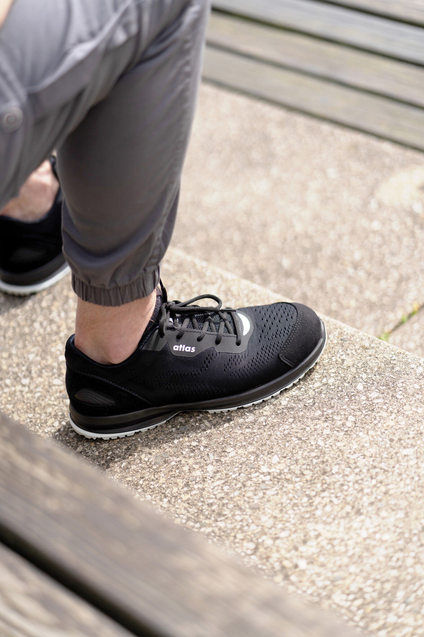 Das Hightech - MESH UPPER umschließt den Fuß passgenau und garantiert dem Träger dauerhafte Atmungsaktivität, Flexibilität und einen unverwechselbaren Tragekomfort. Die Lufttextur des Gewebes garantiert eine optimale Luftzirkulation und sorgt somit für ein dauerhaft angenehmes Fußklima. Das Sohlensystem bietet maximalen Tragekomfort in der Arbeitswelt. Bei der Entwicklung spielten ein hoher Tragekomfort und eine angenehme Weichbettung eine besondere Rolle.Ein Höchstmaß an Flexibilität, Dynamik und Komfort. Mit der durchtritthemmenden XP® Technologie bietet ATLAS® ein innovatives System zum Schutz des Fußes gegenüber spitzen Gegenständen, wie z.B. Nägeln. Hierfür kommt ein textiles Hightech-Material, welches unteranderem Aramid-Fasern enthält, zum Einsatz. Hierdurch geht die erhöhte Sicherheit nicht zu Lasten des Tragekomforts, denn das Textil ist metallfrei, extrem leicht und unterstützt die natürliche Torsion des Fußes.
