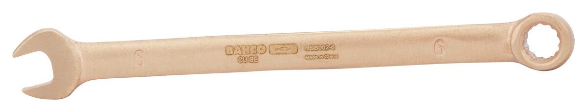 Funkenfreie Werkzeuge werden in Bereichen eingesetzt, in denen durch Funkenflug eine potenzielle Feuer- und Explosionsgefahr besteht. 6-mm-Ring-Maulschlüssel aus Kupferberyllium, 105 mm.