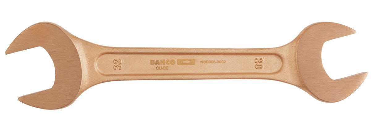 Funkenfreie Werkzeuge werden in Bereichen eingesetzt, in denen durch Funkenflug eine potenzielle Feuer- und Explosionsgefahr besteht. Doppelmaulschlüssel, 6 x 7 mm, aus Kupferberyllium, 92 mm.