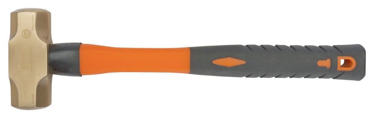 Funkenfreie Werkzeuge werden in Bereichen eingesetzt, in denen durch Funkenflug eine potenzielle Feuer- und Explosionsgefahr besteht. Vorschlaghammer mit Kupferberyllium-Kopf und Fiberglas-Griff, funkenfrei, 450 g.