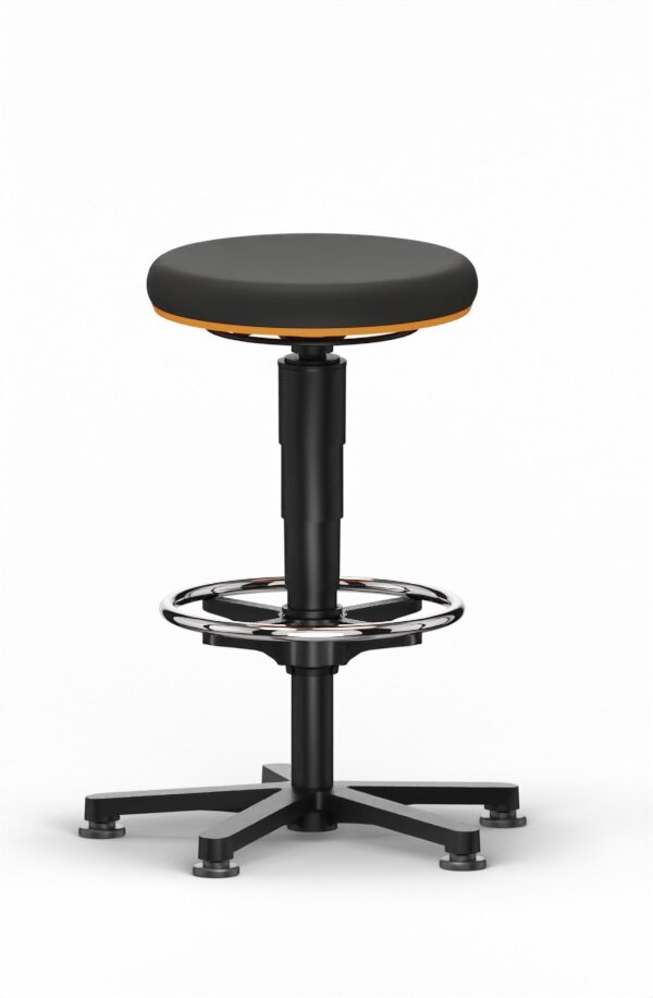 Allround Hocker 3, mit Gleiter und Fußring, Kunstleder Magic schwarz, Farbring orange