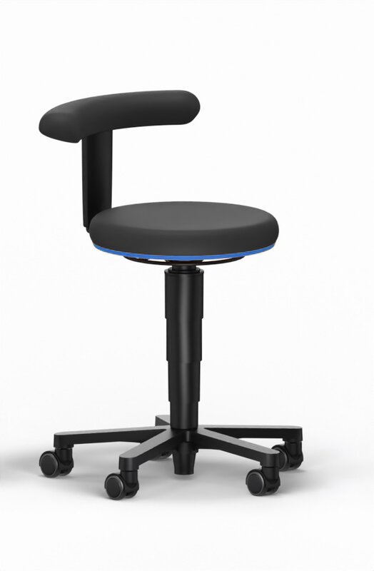 Allround Hocker 2, mit Rollen, Integralschaum schwarz, Farbring blau