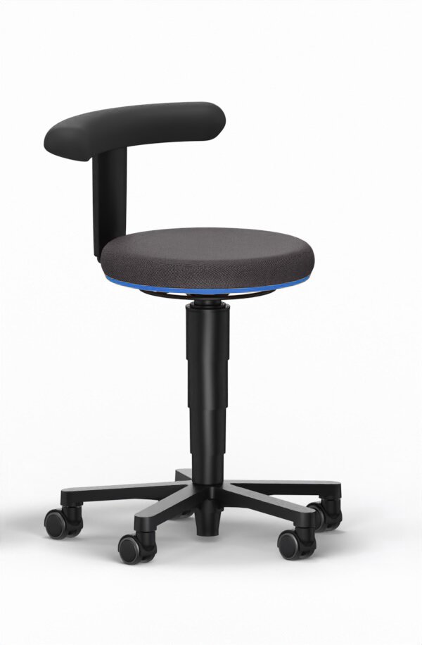 Allround Hocker 2, mit Rollen, Stoff Duotec schwarz, Farbring blau