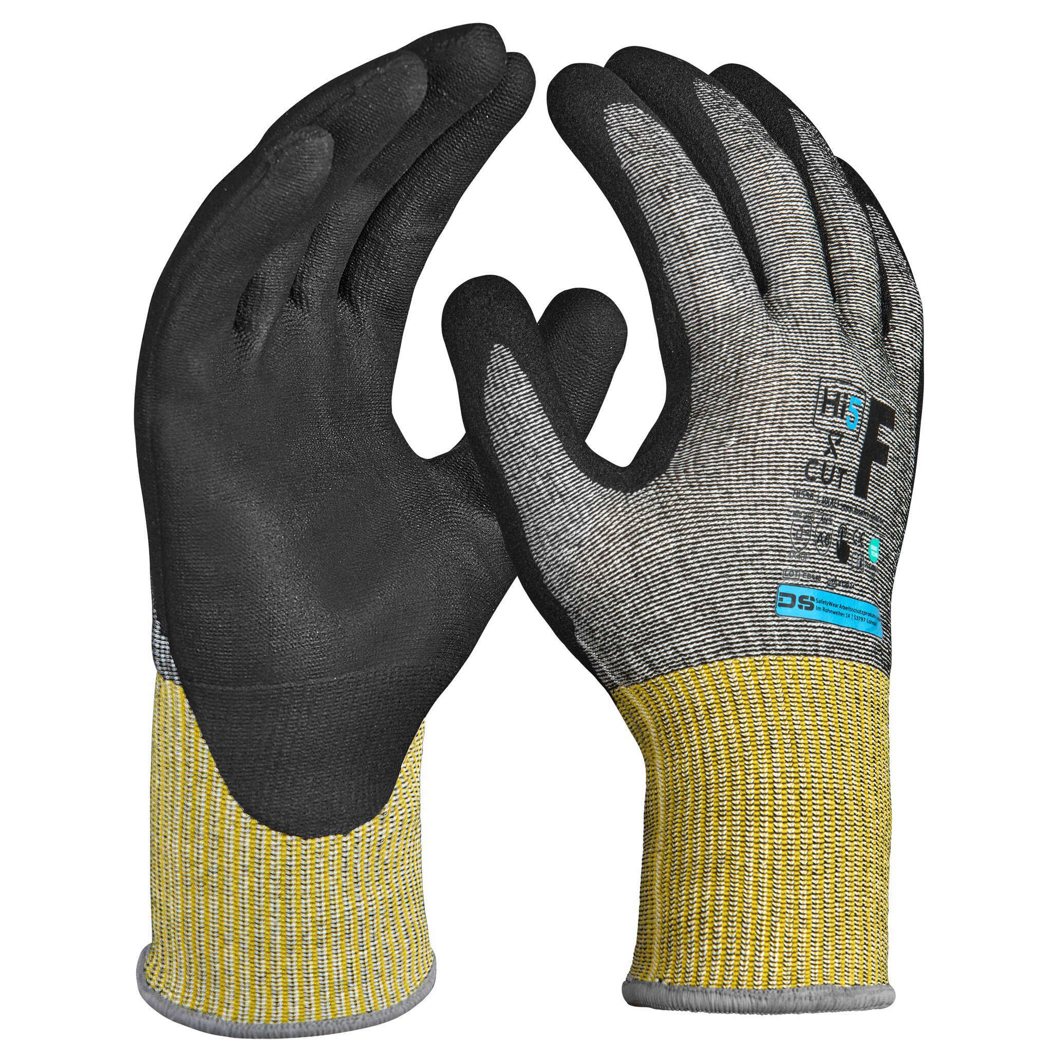 Entdecke die ultimative Kombination aus Sicherheit und Komfort mit den Hi5 X Cut Schnittschutz Handschuhen 4X43F in elegantem Schwarz von DS Safetywear. Diese Handschuhe sind mit einer Nitrilschaumbeschichtung ausgestattet, die eine hervorragende Griffigkeit und Abriebfestigkeit bietet. Die 15G Schnittschutzschale und die Nitril-Mikroschaum beschichteten Handflächen sorgen für einen erstklassigen Schutz auf Level F/A6.