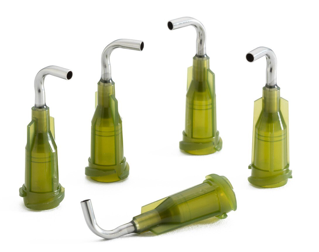 Dosiernadel 0,5", 90° abgewinkelt, Gauge 14, oliv, gebogen