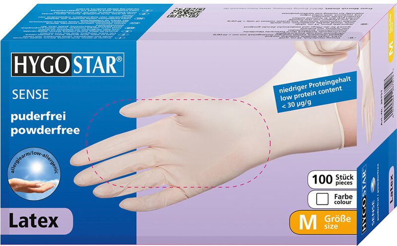 Hygostar Latexhandschuh SENSE, natur, doppelt chloriniert, puderfrei, Größe M