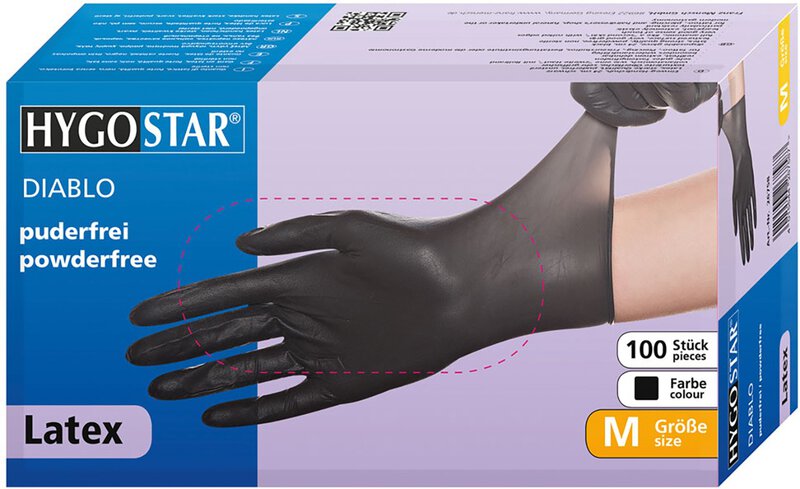 Hygostar Latexhandschuh DIABLO, schwarz, puderfrei, Größe L