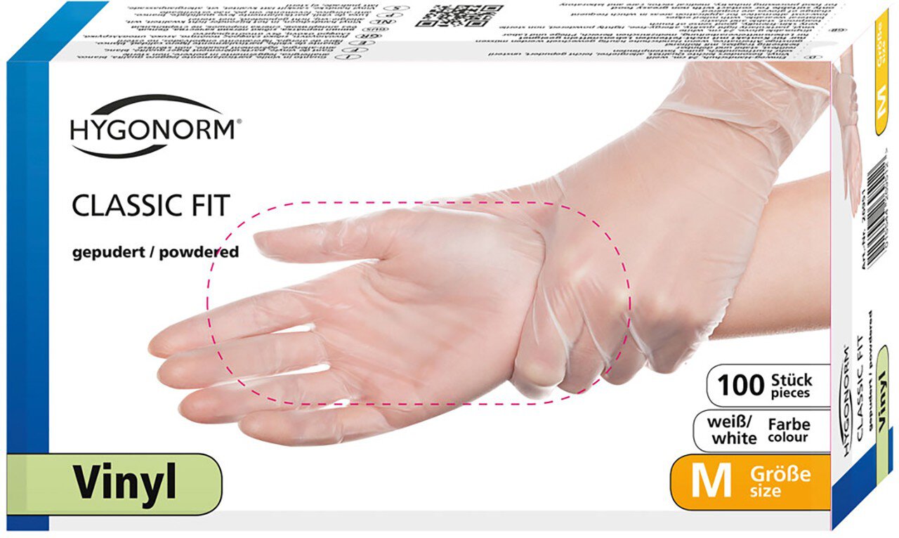 Hygonorm Vinyl-Handschuhe CLASSIC FIT gepudert, extra leichte Qualität, Größe S