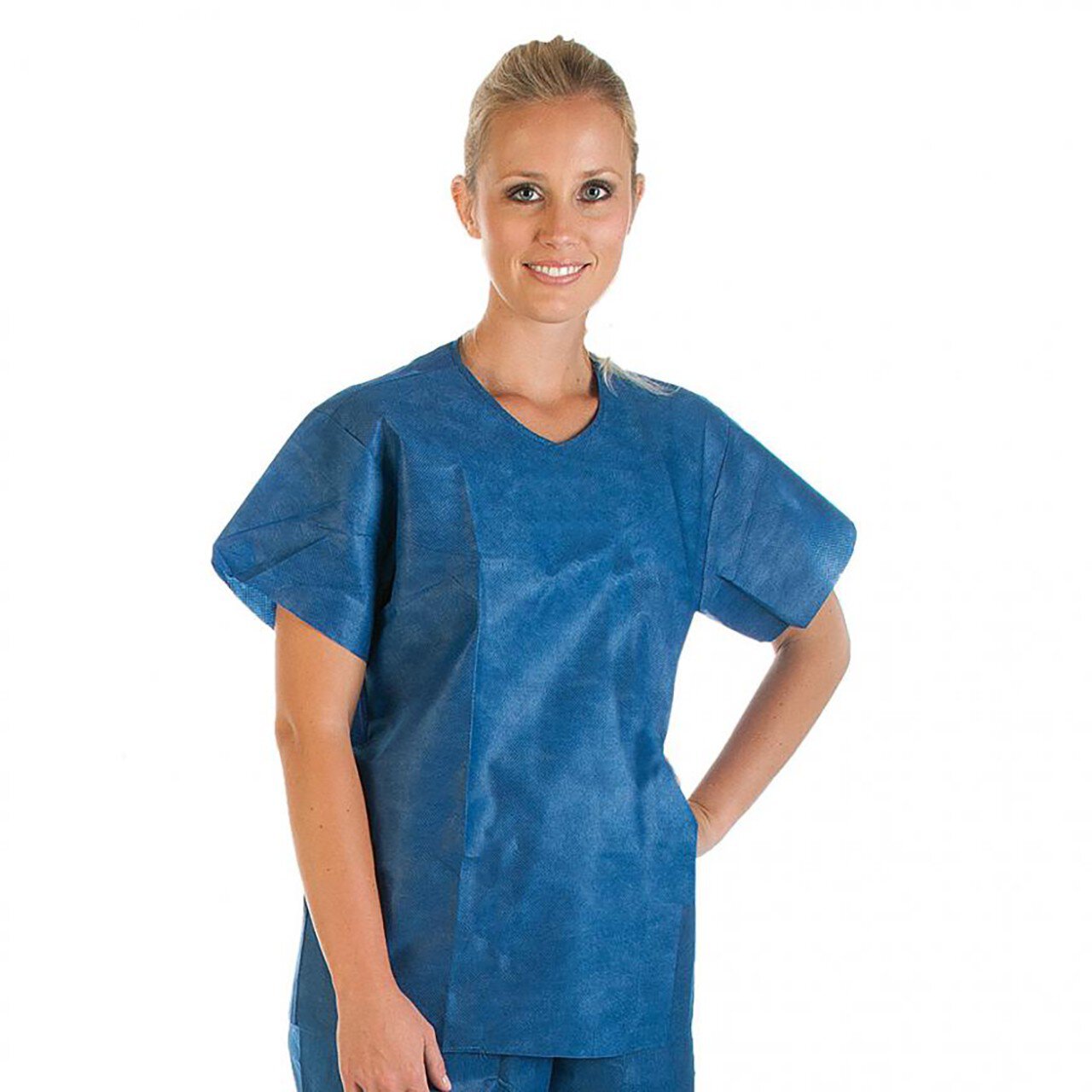 extrem soft und weich sehr blickdicht dank zusätzlicher Meltblown-Schicht luftdurchlässig und angenehm zu tragen dicht gegen Flüssigkeiten im Set oder einzeln erhältlich hautfreundlich, kein Kratzen, kein Reiben kurzarm mit Druckknopf am Kragen Brusttasche 2 Eingrifftaschen vorne speziell für Krankenhaus-Mitarbeiter, wo Kleidung täglich gewechselt wird