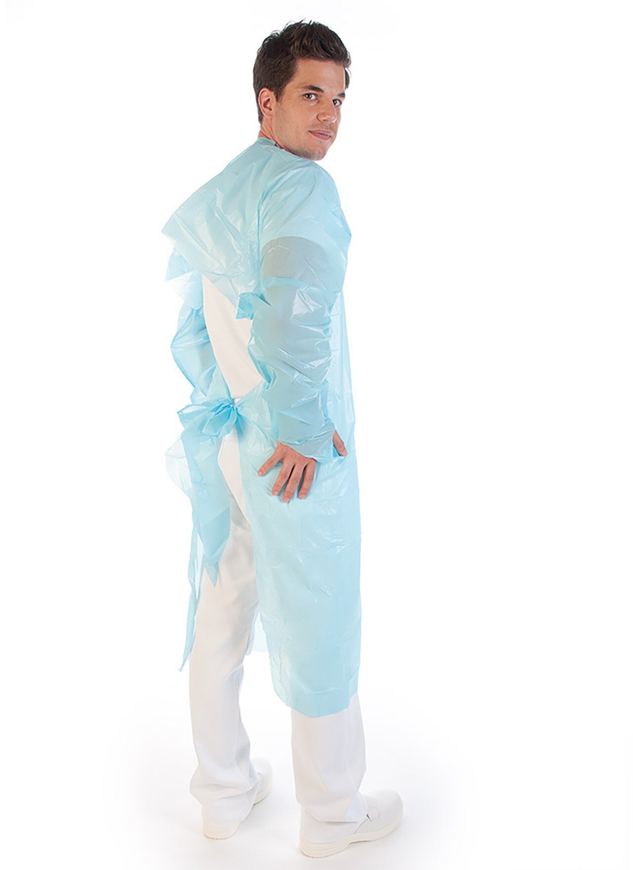 Noch ein Vorteil: Der Kittel besteht aus hochwertigem CPE (Cast Polyethylen). Dieses Material ist absolut flüssigkeitsdicht .