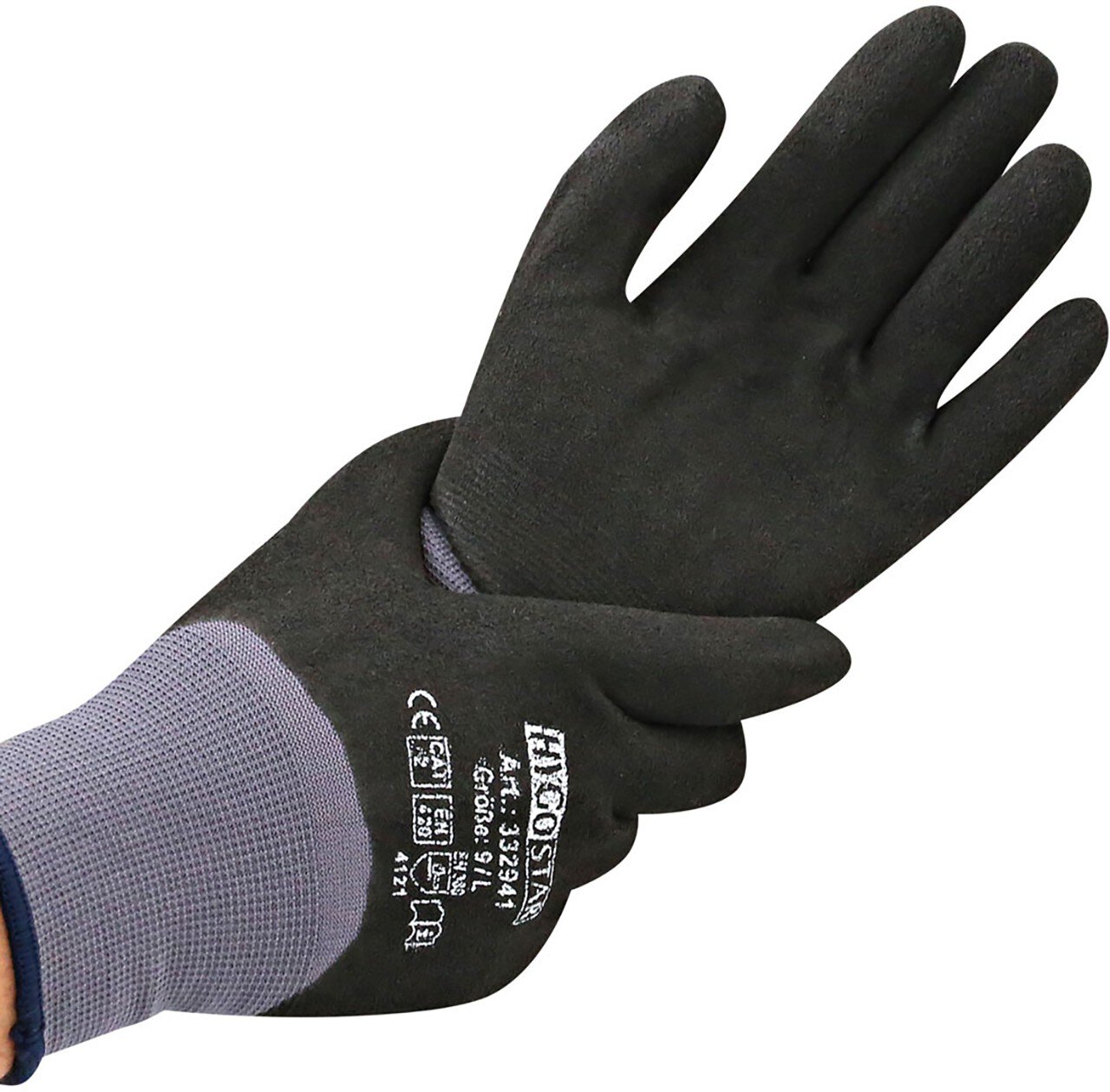 Hygostar Stretch-Strick-Handschuh ERGO FLEX 4/4 Nitril-PU-Beschichtung, schwarz, Größe S, 4/4 getaucht