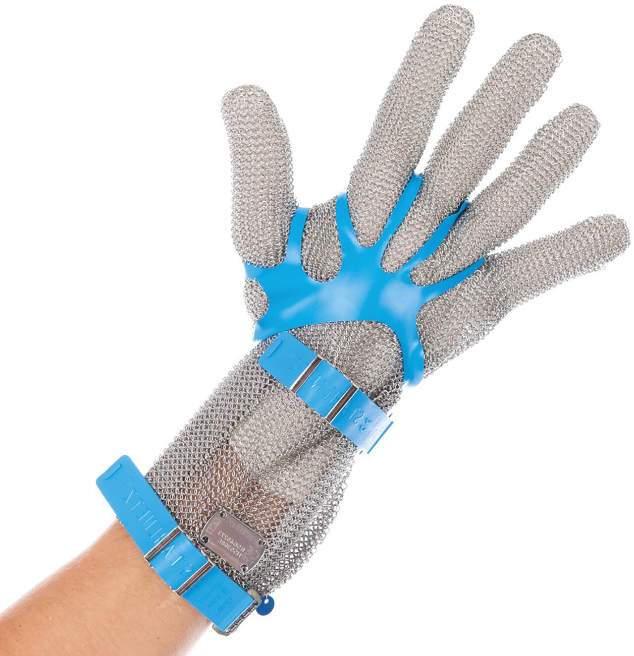 Stechschutzhandschuhe mit 8cm-Stulpe von Hygostar: Der Stechschutz-Handschuh besitzt eine Stulpe von 8cm. Das Geflecht aus Edelstahlringen ist extrem robust und sorgt für einen erhöhten Schutz. Er kann durch die bewährte Druckknopftechnik passgenau eingestellt werden. Gleichzeitig wird ein schnelles Ausziehen des Handschuhs ermöglicht. Der Stechschutzhandschuh ohne weitere Umstellungen, links oder rechts getragen werden. Er ist zudem sehr hygienisch, da er rückstandslos gereinigt werden kann. Daher eignet er sich besonders für den Umgang mit Lebensmitteln. Hinweis: Der Handschuhspanner ist nicht im Lieferumfang enthalten.