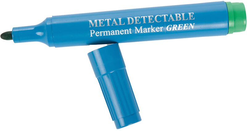 Detektierbare Marker sind ein wichtiges Arbeitsmittel für große Lebensmittelproduktionen. Mit einem wasserfesten Permanentmarker können Sie schnell und einfach große Beschriftungen vornehmen.Die runde, dicke Spitze sorgt für ein klares Schriftbild. Der Permanentmarker besteht aus einem detektierbarem Kunststoff.Das bedeutet, dass der Marker für Metalldetektoren auffindbar ist und als Fremdkörper identifiziert werden kann, falls er einmal in der Produktion verloren geht.