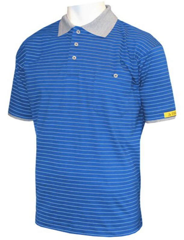 | Ausstattung (Kleidung) | Brusttasche erfüllt Anforderungen der DIN EN 61340-5-1 ESD Logo auf dem Ärmel Knopfleiste Polo-Kragen |