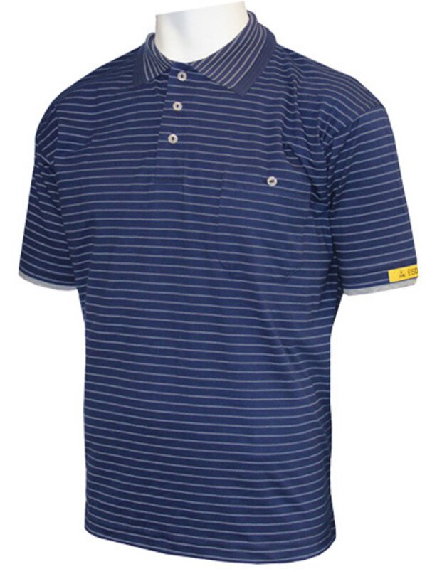 | Ausstattung (Kleidung) | Brusttasche erfüllt Anforderungen der DIN EN 61340-5-1 ESD Logo auf dem Ärmel Knopfleiste Polo-Kragen |