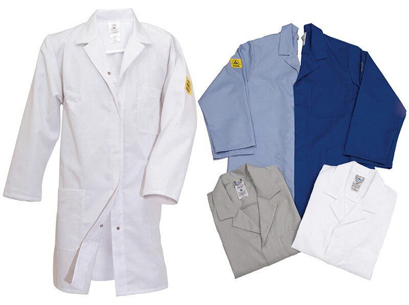 | Ausstattung (Kleidung) | 2 Seitentaschen Brusttasche erfüllt Anforderungen der DIN EN 61340-5-1 ESD Logo auf dem Ärmel Knopfreihe mit Stoff bedeckt ohne Seitennähte geschnitten Stehkragen verdeckte Knopfleiste |