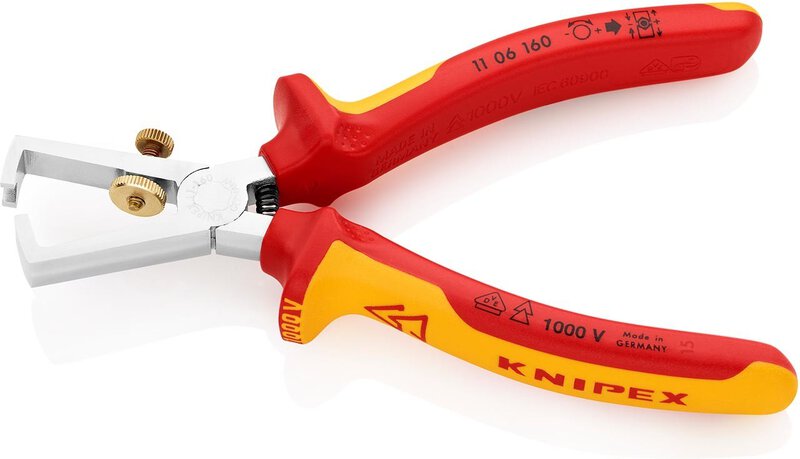 Abisolierzange mit Öffnungsfeder, verchromt, isoliert, 160 mm