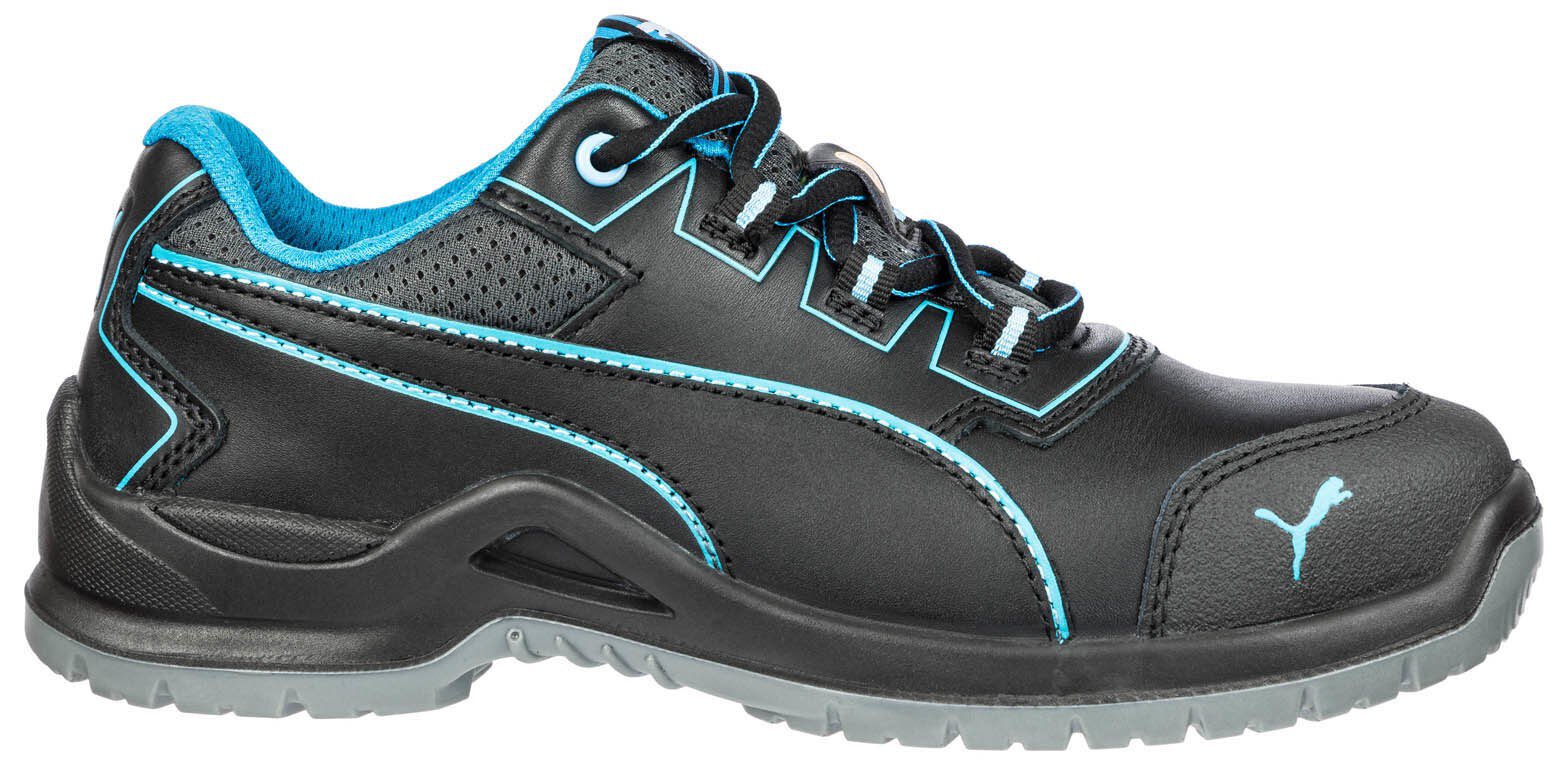 AHEAD OF TIME Ladies aufgepasst. Der NIOBE BLUE WNS LOW aus der TECHNICS LINE Linie von PUMA SAFETY zeichnet sich durch hohe Flexibilität und spürbar leichte Bauweise aus. Erreicht wird das durch die naturalFLEXMOTION-Sohlenarchitektur. Sie kombiniert das "Natural Running"-Konzept mit modernster Sicherheitsschuhtechnologie. Der S3 Sicherheitsschuh mit ESD Eigenschaften aus glattem Vollrindleder ist mit einer hochbelastbaren Stahlkappe und FAP-Durchtrittschutz ausgestattet. Das evercushion BA Fußbett aus offenporigem Schaumstoff transportiert Feuchtigkeit vom Fuß weg und sorgt zusammen mit dem atmungsaktiven BreathActive Funktionsfutter für ein angenehmes Fußklima den ganzen Tag lang. Das speziell entwickelte Wafer-Profil der Laufsohle garantiert dabei bestmöglichen Grip, vor allem auf glatten Industrieböden.