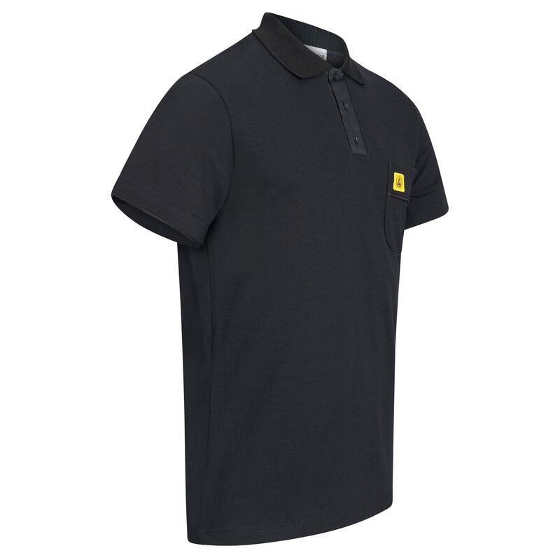 Das SafeGuard ESD Poloshirt PRO PLUS in Schwarz ist nicht nur ein Arbeitskleidungsstück, sondern ein Statement für Fachkompetenz und Sicherheit. Mit seinem markanten schwarzen Kragen und dem ESD Logo auf der Brusttasche vereint es Stil und Funktionalität. Das Flächengewicht von 210g/m² sorgt für angenehmen Tragekomfort, während die eingearbeiteten Carbonfasern dem Shirt seine ableitende Eigenschaft verleihen. Die Ärmel mit schwarzem Bund und die praktische Brusttasche machen dieses Poloshirt zu einem unverzichtbaren Begleiter in der Elektronikfertigung. Es erfüllt die strengen Anforderungen der DIN EN 61340-5-1 und garantiert somit zuverlässigen Schutz vor elektrostatischen Entladungen. Der stilvolle Polo-Kragen und die Knopfleiste verleihen dem Shirt eine professionelle Optik. Hergestellt aus hochwertigen Materialien - 50% Baumwolle, 47% Polyamid und 3% Carbonfaser - bietet das ESD Poloshirt PRO PLUS eine hervorragende Kombination aus Komfort und Funktionalität. Mit einem Ableitwiderstand von 10⁵ - 10⁷ Ohm setzt dieses Shirt neue Maßstäbe in puncto Sicherheit und Leistung. Sichern Sie sich jetzt das SafeGuard ESD Poloshirt PRO PLUS und zeigen Sie Ihre Expertise in Sachen ESD-Schutz und Elektronikfertigung. Ein Must-Have für alle, die Qualität, Stil und Sicherheit zu schätzen wissen.