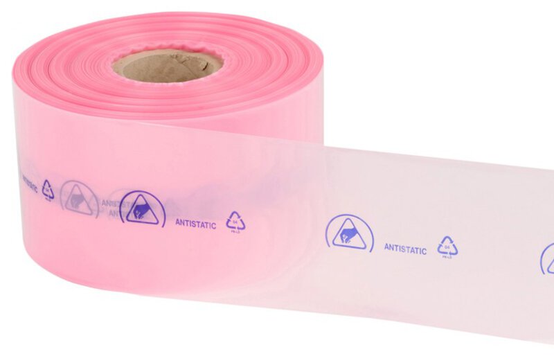 ESD-Schlauchfolie, rosa, permanent ableitend, 9μm, 100 mm, 250 m Rolle