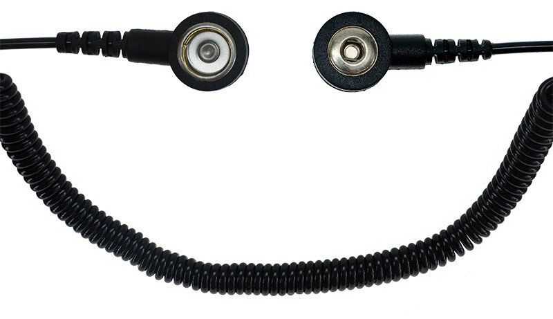 Das ESD Spiralkabel von Safeguard ist ein wichtiger Bestandteil bei der Personenerdung in der ESD Zone (EPA), um elektronische Geräte und Bauteile vor elektrostatischer Entladung zu schützen. Der Ableitwiderstand beträgt 1 Mohm. Die Länge des Kabels von 1,8 Metern ermöglicht flexibles arbeiten, ohne das die Bewegungsfreiheit einschränkt wird. Das ESD Spiralkabel in der Farbe Schwarz verfügt über einen 3mm Druckknopf sowie einen . Die Farbgebung ermöglicht es, das Kabel jederzeit und bei verschiedenen Lichtverhältnissen gut zu erkennen.