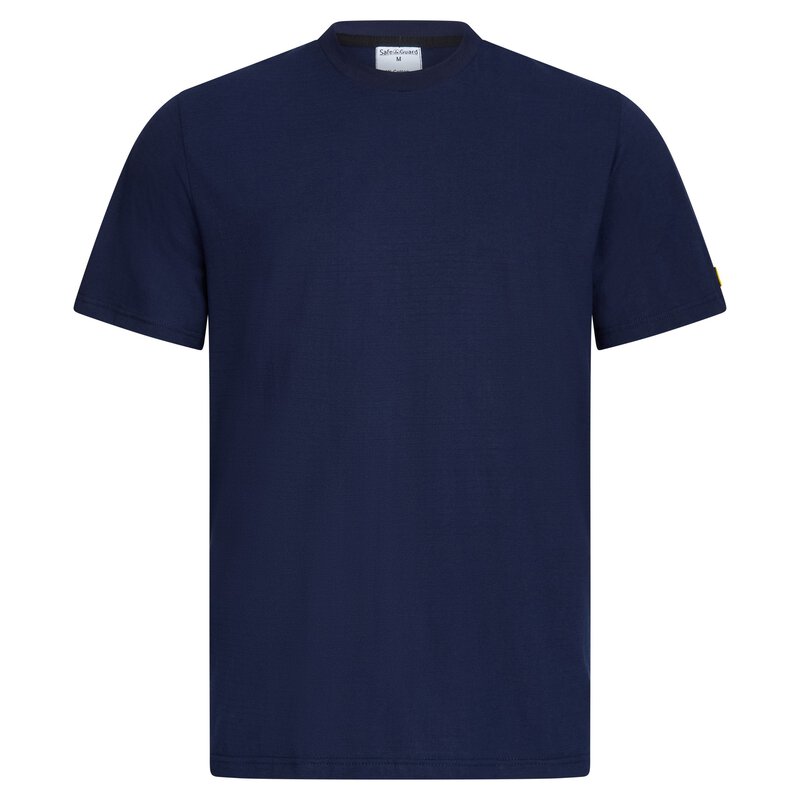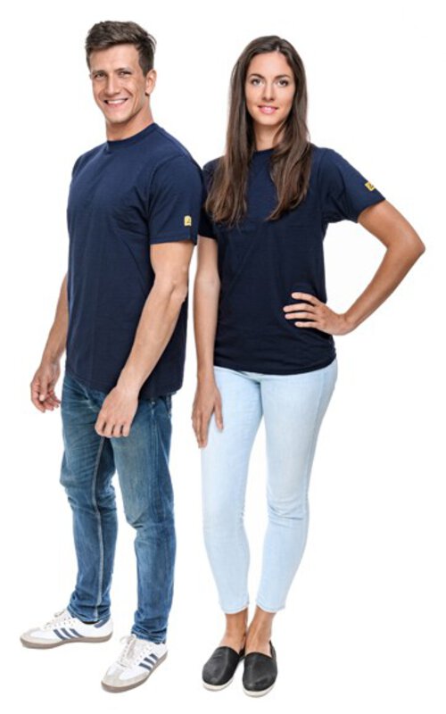 Unsere SafeGuard ESD T-Shirts sind die perfekte Wahl für alle, die Komfort und Qualität schätzen. Hergestellt aus veredelter, hochwertiger Baumwolle bieten sie ein angenehmes Tragegefühl. Mit dem runden schwarzen Kragen und dem gestickten ESD-Logo auf dem Ärmel setzen sie stilvolle Akzente. Das typische Punkt-zu-Punkt Widerstandsniveau von Rp-p: 10⁵ - 10⁷ Ohm gewährleistet eine effektive Ableitung elektrostatischer Ladungen. Diese marineblauen Unisex-T-Shirts erfüllen nicht nur die Anforderungen der DIN EN 61340-5-1, sondern sind auch Öko Tex zertifiziert. Dank des kurzen Arms und des Rundhalsausschnitts sind sie sowohl bequem als auch stylisch. Die Zusammensetzung aus 96% Baumwolle und 4% Carbonfaser sowie das Flächengewicht von 150 g/m² sorgen für Langlebigkeit und Tragekomfort. Mit der ESD Zertifizierung nach IEC 61340-5-1:2016 bieten unsere T-Shirts die optimale Kombination aus Funktionalität und Design. Gönnen Sie sich noch heute ein SafeGuard ESD T-Shirt und erleben Sie höchste Qualität in Sachen ESD-Schutz!