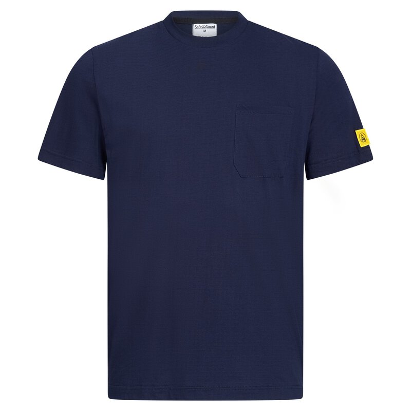 Das marineblaue ESD T-Shirt von SafeGuard vereint Stil, Komfort und Funktion in einem Kleidungsstück. Mit seinem typischen Oberflächenwiderstand von 10⁵ Ohm - 10⁷ Ohm bietet es zuverlässigen Schutz in ESD-geschützten Arbeitsbereichen. Das kurzärmelige Shirt mit Rundhalsausschnitt ist nicht nur für Damen, sondern auch für Herren geeignet und besticht durch seine hochwertige Verarbeitung aus 96% Baumwolle und 4% Carbonfaser. Dank der Öko Tex Zertifizierung können Sie sich nicht nur auf die Qualität des Materials verlassen, sondern auch auf dessen Umweltverträglichkeit. Die Brusttasche und das diskrete ESD-Logo auf dem Ärmel verleihen dem Shirt eine praktische Note, während es gleichzeitig den Anforderungen der DIN EN 61340-5-1 entspricht. Das Flächengewicht von 150 g/m² sorgt für ein angenehmes Tragegefühl und macht das Shirt zum idealen Begleiter im Arbeitsalltag. Waschbar bei 40°C, sollten Sie jedoch darauf achten, keinen Weichspüler zu verwenden, um die ESD-Eigenschaften zu erhalten. Mit dem SafeGuard ESD T-Shirt setzen Sie nicht nur ein Fashion-Statement, sondern investieren auch in Ihren Arbeitskomfort und Ihre Sicherheit. Zeigen Sie Stilbewusstsein und technisches Know-how mit diesem einzigartigen Produkt!