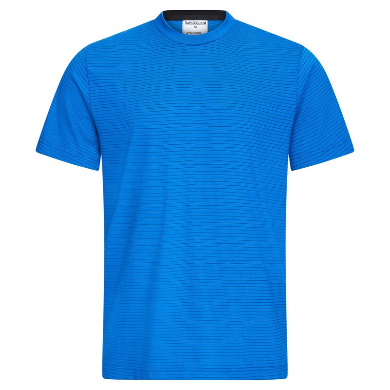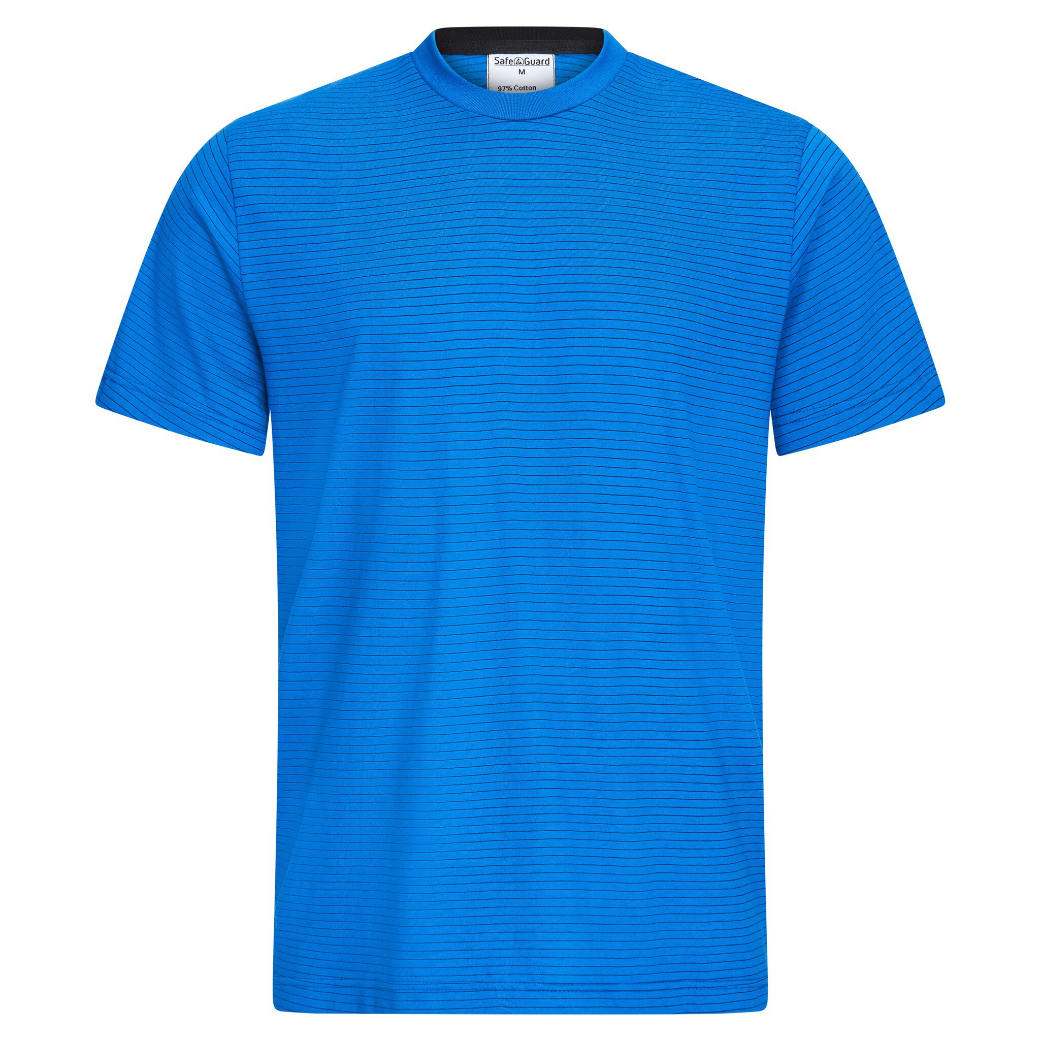 Unsere SafeGuard ESD T-Shirts sind die perfekte Wahl für alle, die Komfort und Qualität schätzen. Hergestellt aus veredelter, hochwertiger Baumwolle bieten sie ein angenehmes Tragegefühl. Mit dem runden schwarzen Kragen und dem gestickten ESD-Logo auf dem Ärmel setzen sie stilvolle Akzente. Das typische Punkt-zu-Punkt Widerstandsniveau von Rp-p: 10⁵ - 10⁷ Ohm gewährleistet eine effektive Ableitung elektrostatischer Ladungen. Diese royalblau Unisex-T-Shirts erfüllen nicht nur die Anforderungen der DIN EN 61340-5-1, sondern sind auch Öko Tex zertifiziert. Dank des kurzen Arms und des Rundhalsausschnitts sind sie sowohl bequem als auch stylisch. Die Zusammensetzung aus 96% Baumwolle und 4% Carbonfaser sowie das Flächengewicht von 150 g/m² sorgen für Langlebigkeit und Tragekomfort. Mit der ESD Zertifizierung nach IEC 61340-5-1:2016 bieten unsere T-Shirts die optimale Kombination aus Funktionalität und Design. Gönnen Sie sich noch heute ein SafeGuard ESD T-Shirt und erleben Sie höchste Qualität in Sachen ESD-Schutz!