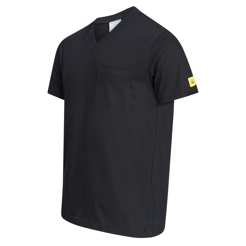 ESD-T-Shirt mit Brusttasche, V-Ausschnitt, 150g/m², schwarz, XL