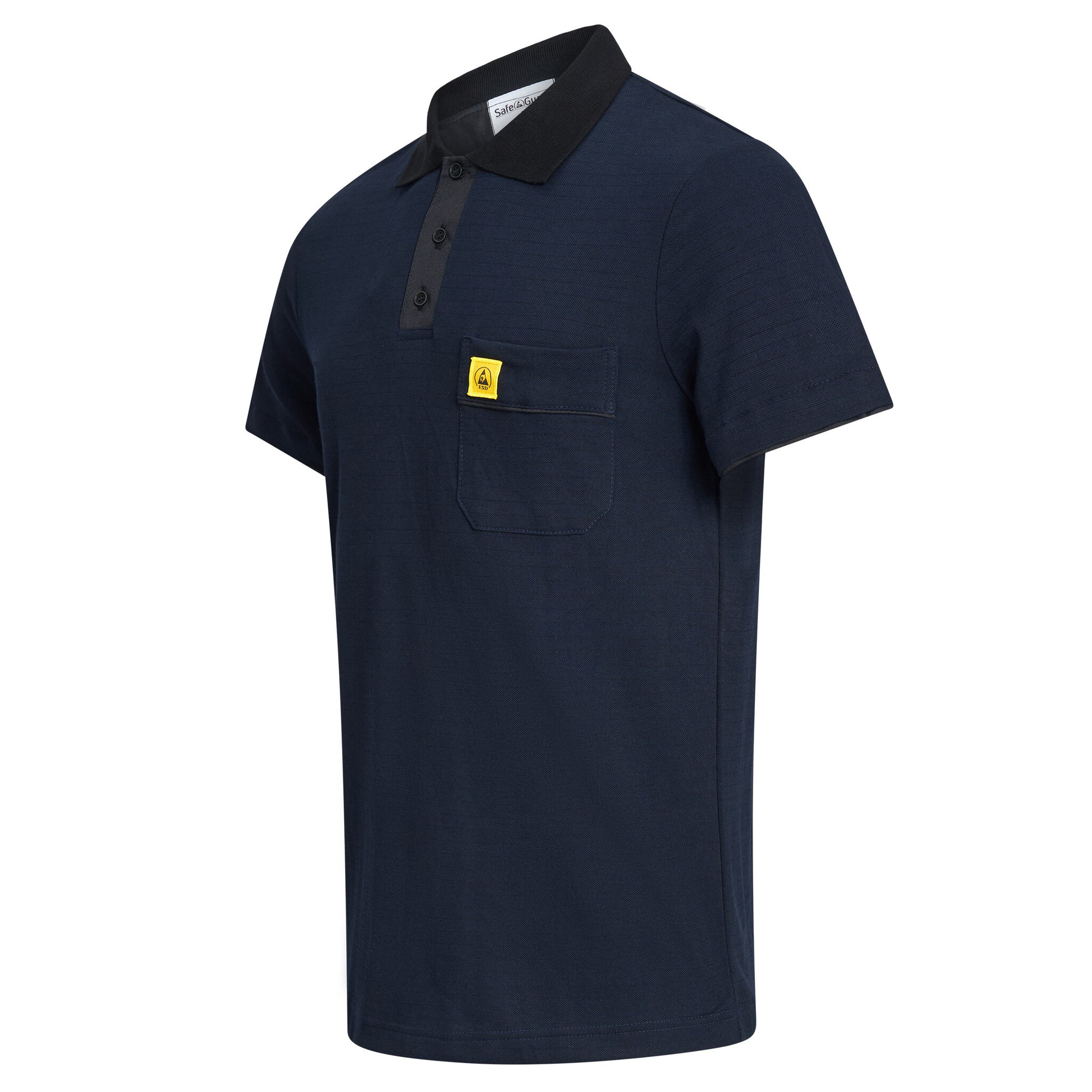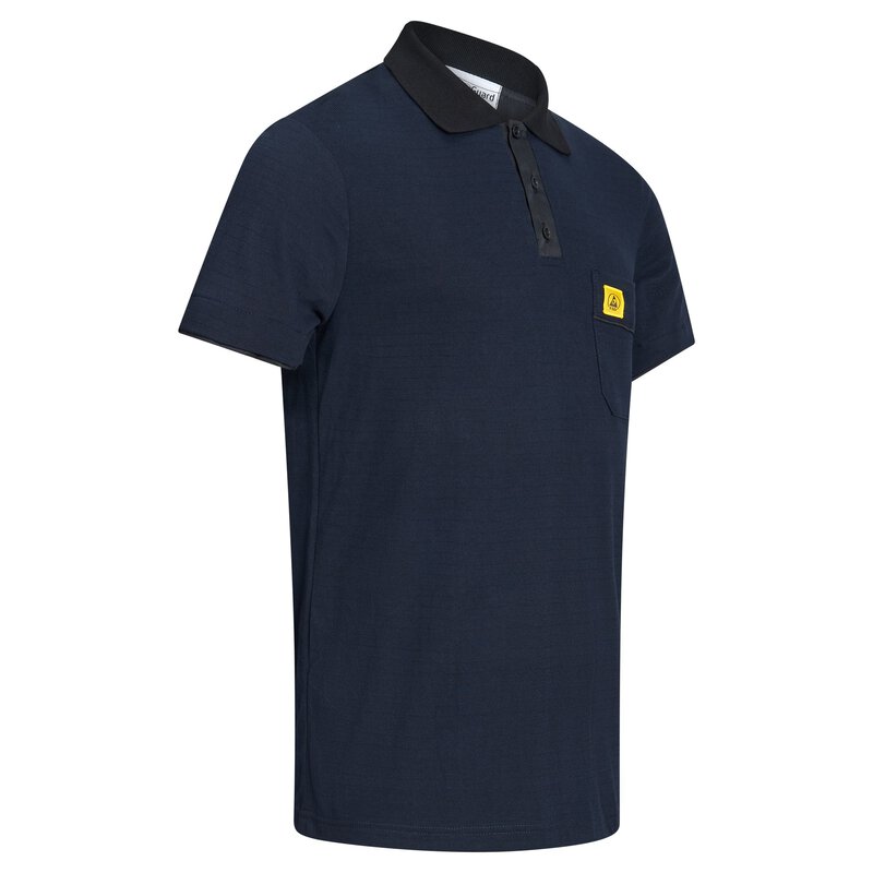 Das SafeGuard ESD Poloshirt PRO PLUS in Navyblau/Schwarz ist nicht nur ein Arbeitskleidungsstück, sondern ein Statement für Fachkompetenz und Sicherheit. Mit seinem markanten schwarzen Kragen und dem ESD Logo auf der Brusttasche vereint es Stil und Funktionalität. Das Flächengewicht von 210g/m² sorgt für angenehmen Tragekomfort, während die eingearbeiteten Carbonfasern dem Shirt seine ableitende Eigenschaft verleihen. Die Ärmel mit schwarzem Bund und die praktische Brusttasche machen dieses Poloshirt zu einem unverzichtbaren Begleiter in der Elektronikfertigung. Es erfüllt die strengen Anforderungen der DIN EN 61340-5-1 und garantiert somit zuverlässigen Schutz vor elektrostatischen Entladungen. Der stilvolle Polo-Kragen und die Knopfleiste verleihen dem Shirt eine professionelle Optik. Hergestellt aus hochwertigen Materialien - 50% Baumwolle, 47% Polyamid und 3% Carbonfaser - bietet das ESD Poloshirt PRO PLUS eine hervorragende Kombination aus Komfort und Funktionalität. Mit einem Ableitwiderstand von 10⁵ - 10⁷ Ohm setzt dieses Shirt neue Maßstäbe in puncto Sicherheit und Leistung. Sichern Sie sich jetzt das SafeGuard ESD Poloshirt PRO PLUS und zeigen Sie Ihre Expertise in Sachen ESD-Schutz und Elektronikfertigung. Ein Must-Have für alle, die Qualität, Stil und Sicherheit zu schätzen wissen.