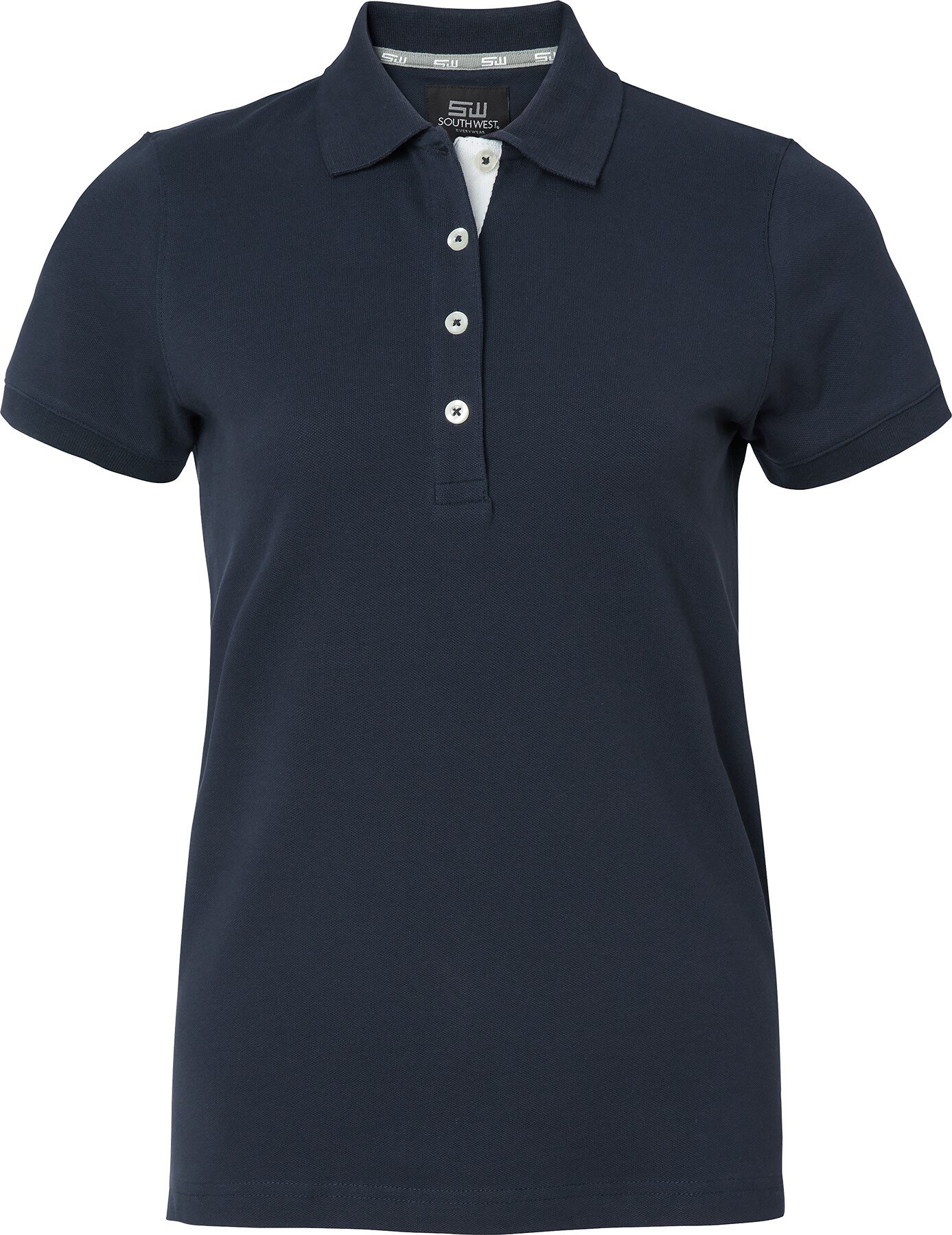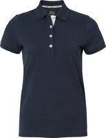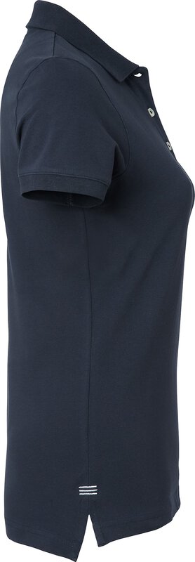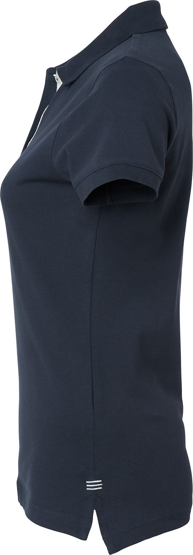Sorgfältig gestaltetes Piqué-Poloshirt im Damenschnitt. Mit Zierband im Nacken und Schlitzen. Halbmondnaht im Nacken. Längere Knopfleiste für einen femininen Look. Die Knopfleiste hat weiße Knöpfe und ein kontrastfarbenes Futter mit Fischgrätmuster sowie eine dezente Ton-in-Ton-Stickerei. Mit kontrastfarbener Stickerei oberhalb der Seitenschlitze.