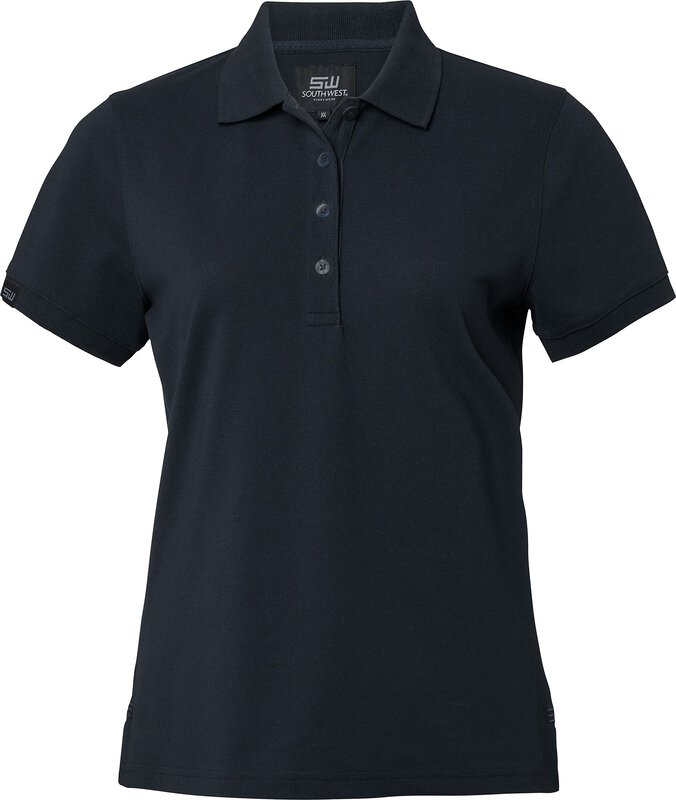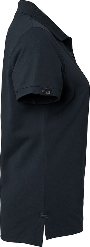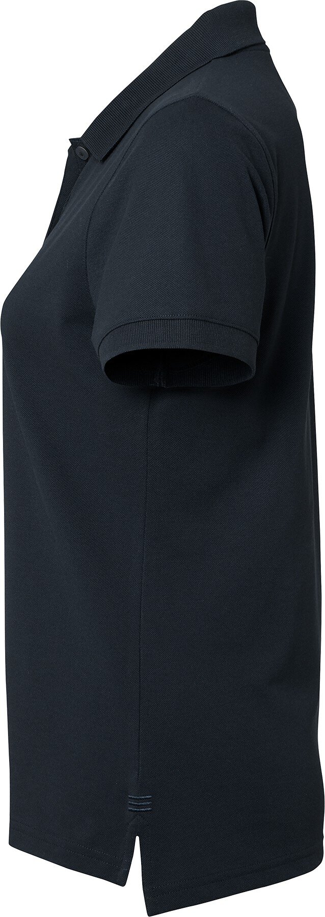 Einfarbiges Poloshirt in Damenpassform mit Knopfleiste und Ton-in-Ton-Knöpfen. Die verlängerte Knopfleiste sorgt für einen femininen Look. Verstärkte Nähte. Kragen und Bündchen aus Rippstrick.