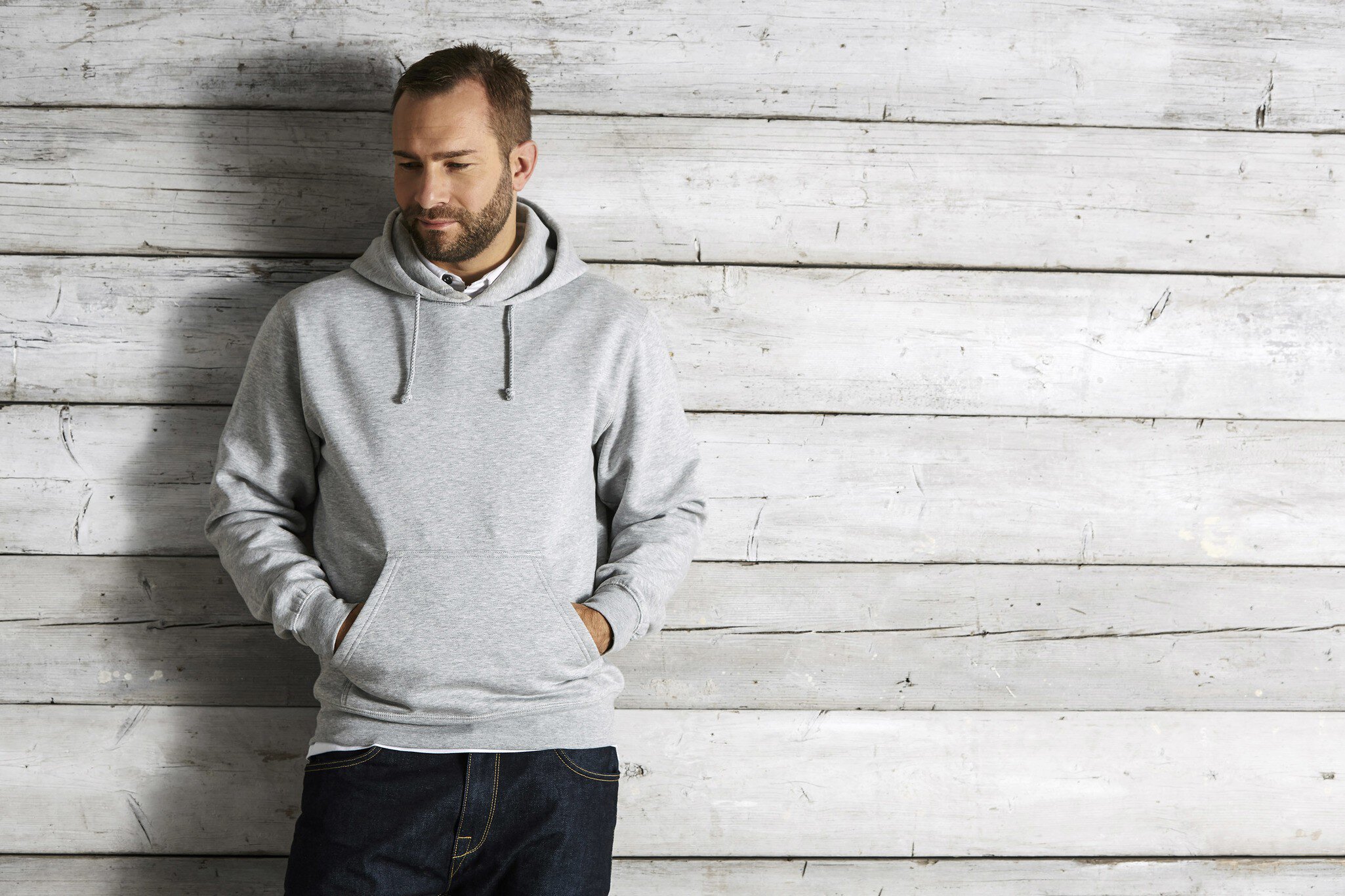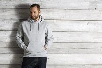 Traditionelles Sweatshirt mit Flatlock-Nähten und doppelter Stoffkapuze. Durchgehende Tasche auf der Vorderseite.