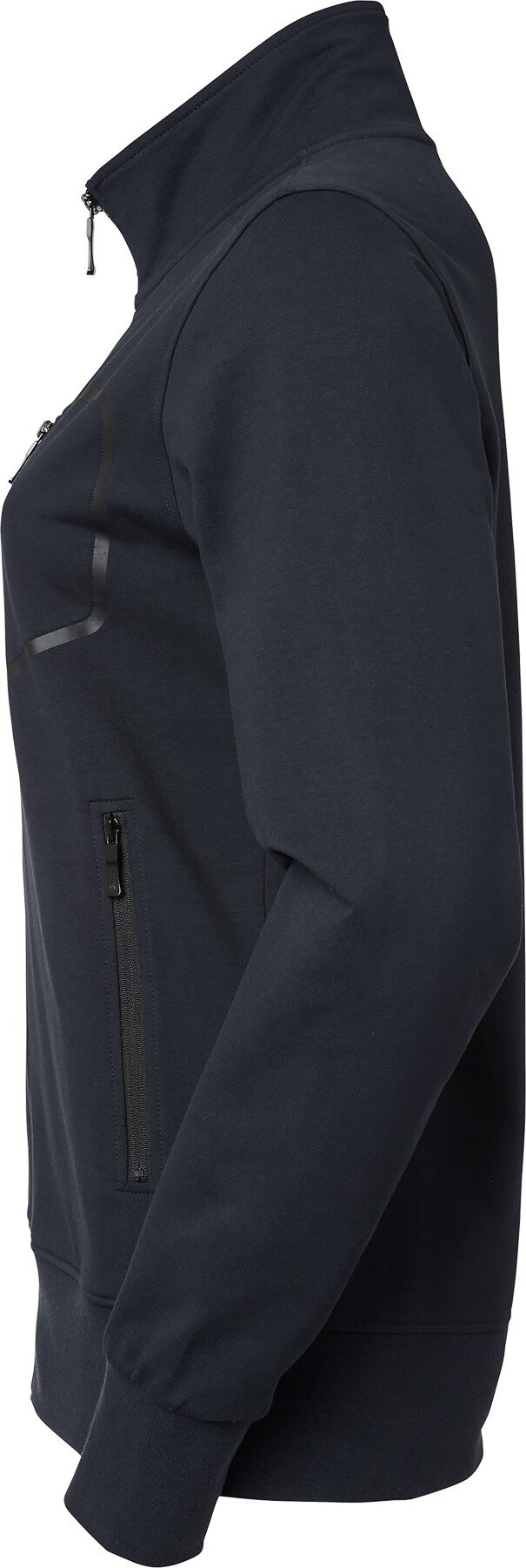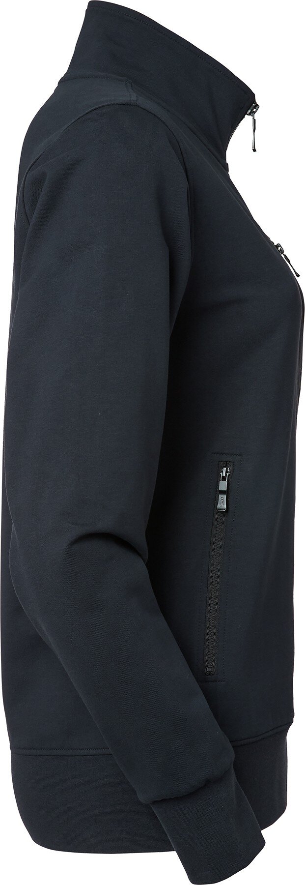 Sweatjacke mit hohem Halsausschnitt und durchgehendem Reißverschluss für Damen aus bequemem, dehnbarem Material. Seitentaschen und Brusttasche mit Reißverschluss. Reißverschlüsse mit geprägtem Logo.
