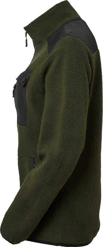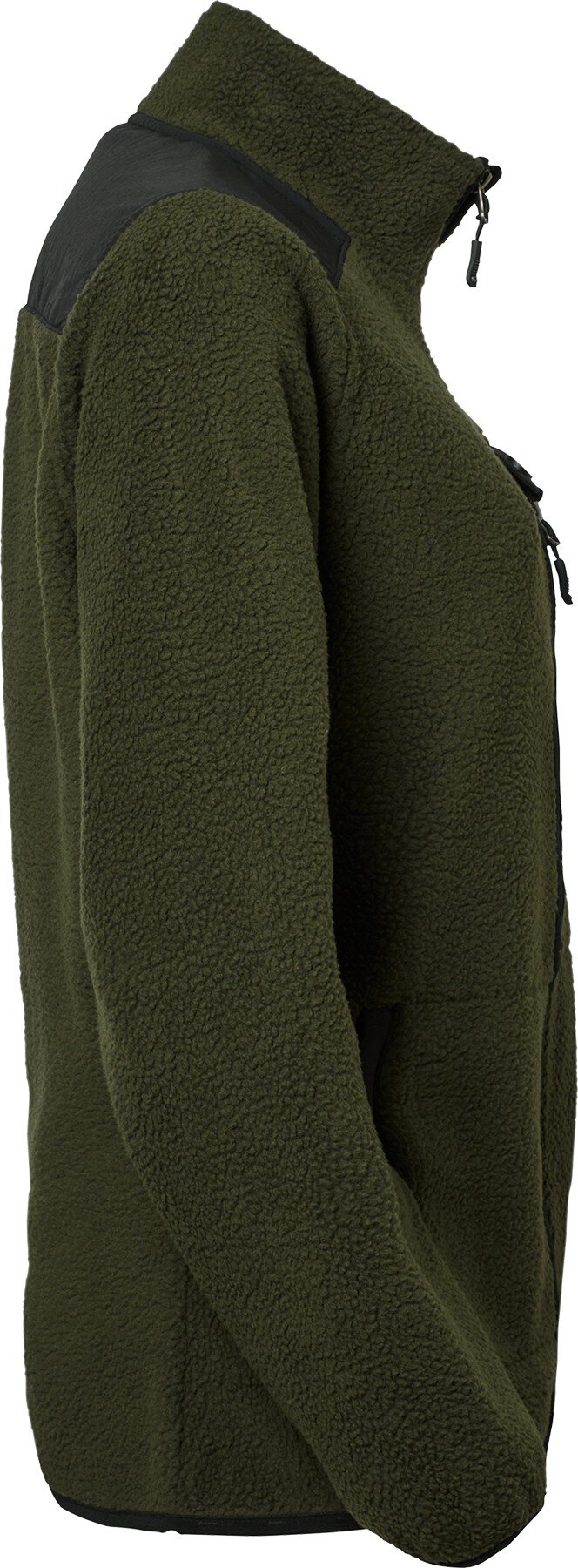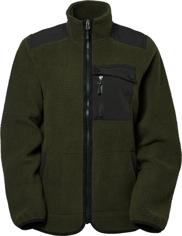 Sherpa-Fleece in Damenpassform, das innen weich und bequem und außen flauschig ist. Diese Jacke hat verstärkte Abschnitte an den Schultern und der Rückenpartie. Zwei Seitentaschen mit Reißverschlüssen und Leistentaschen. Brusttasche mit Doppelfunktion - eine mit Lasche, eine mit Reißverschluss. Alle gewebten Teile der Jacke sind schwarz. Geschwungener unterer Saum am Rücken mit dezentem SW-Gummilabel.