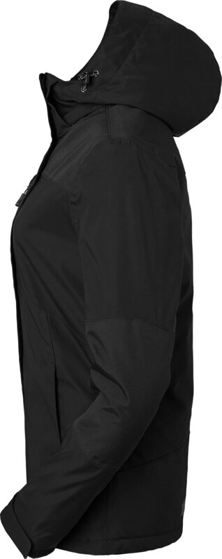 Gefütterte, wind- und wasserabweisende Jacke in Damenpassform. Verschweißte Nähte und gute Atmungsaktivität. Zusätzliche Verstärkung an exponierten Stellen wie Schultern, Ellbogen und Innenseite der Ärmel. Verstellbare Ärmelbündchen und abnehmbare Kapuze. Reflektierendes Band unten am Rücken und an der Kapuze. Geräumige Taschen und Reißverschlüsse mit eingewebtem reflektierendem Garn an allen Reißverschlüssen. Gerippte Innenseite aus funktionellem Stretchgewebe. Verstellbarer Kordelzug am unteren Ende.
